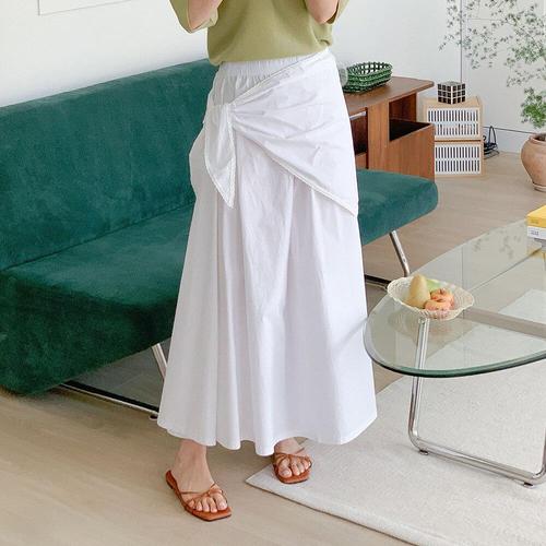 [미라클세븐]여성 빅사이즈 롱스커트 레이어드 매듭 면 밴딩 치마