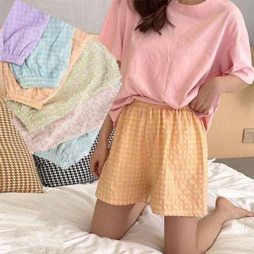 [셀럽하우스]은창)플라워 AXMR9364 격자 패턴 면 반바지 파자마 잠옷 여름