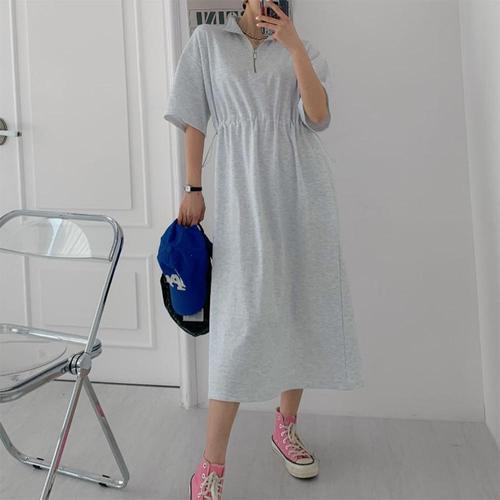 [옷자락] [시즌오프]하프 반집업 셔링 5부반팔 코튼 스트링 롱원피스_5