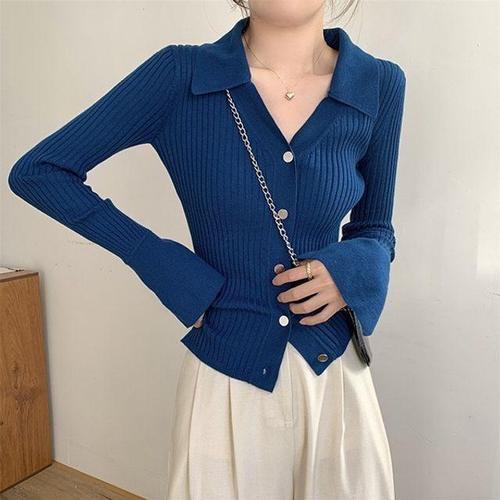[오너클랜]인기상품 브이컷 심플 블랙색상 블루 긴소매탑 상의 모던라인 스웨터 레이디 [WFLFEUX_260418]