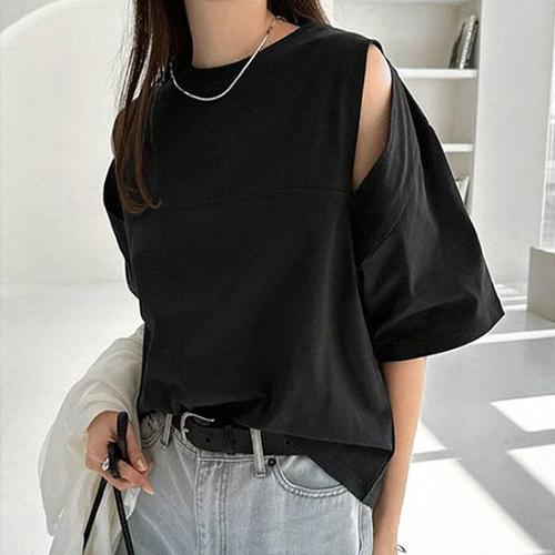 [H2.모데나] ★기획특가★ 스카프 레이어드 반팔 티셔츠_2컬러