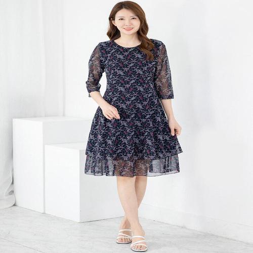 [모슬린]엄마옷 플라워 이단 플레어 원피스 614FGH278 마담/중년여성/빅사이즈/50대/60대