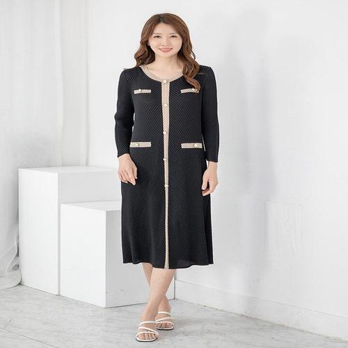 [모슬린]엄마옷 원피스 플리츠 7부 롱 배색 604FGH047 마담/중년여성/빅사이즈/50대/60대