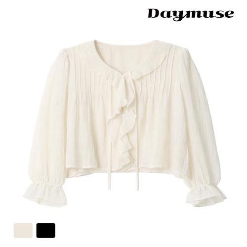 TEMU 가볍고 신선한 루즈핏 삼분의 일 소매 돌 블라우스 탑 러플 셔츠