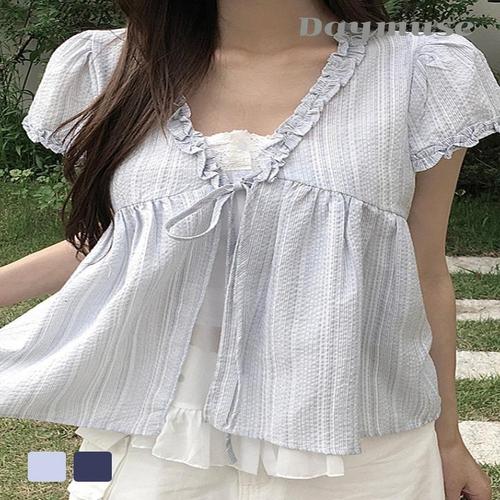 TEMU 2026 봄-여름 신상 프렌치 보우 장식 퍼프 슬리브 블라우스 | 패션 스타일링의 이상적인 선택