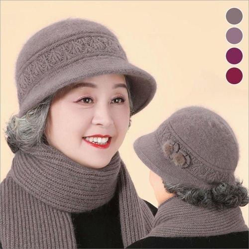 중년여성 겨울 토끼털 따뜻한 니트모자 머플러세트 방한 WFLACTZ