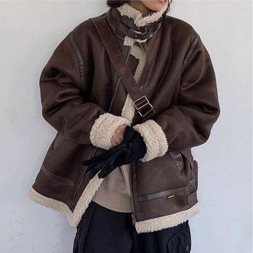 여사친 캐주얼 빈티지 가을 터틀넥 자켓 상의 코트 따뜻한 무스탕 초 OP3