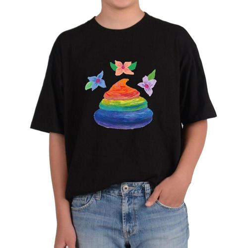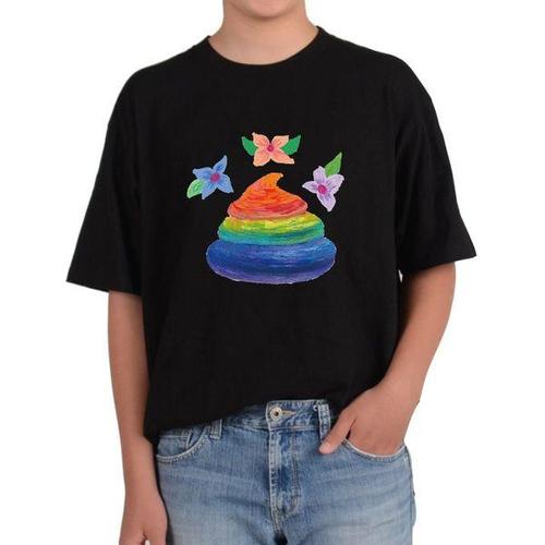 길단 반팔 USA핏 무지개색 똥 꽃향기가 똥에서 나네요 똥꿈꾸면그림 WFKOJVV