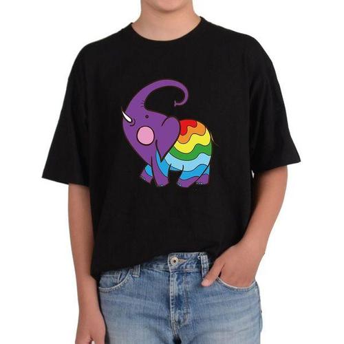 [에이치플러스몰]반팔라운드 코끼리 엘리펀트 elephant 무지개색 코끼리 전사이즈