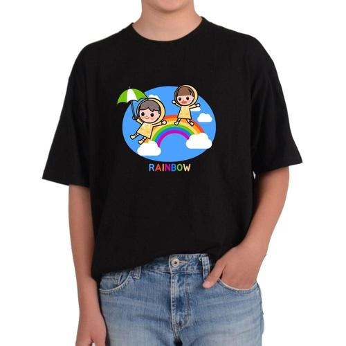 길단 반팔 USA핏 무지개 우산 RAINBOW 우비소녀 무지개다리그림 WFKOJWM