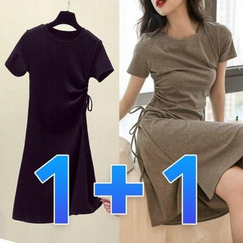 [오너클랜]인기상품 이쁘다요 베이직 라운드 스커트 무지 셔링 원피스 랩 라인 [WFLMEVJ_260419]