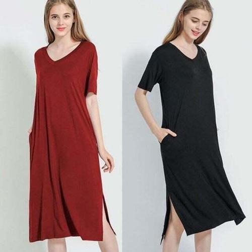 [오너클랜]인기상품 이쁘다요 브이 롱드레스 파자마 데일리 무지 포켓 원피스 [WFLMEVO_260419]