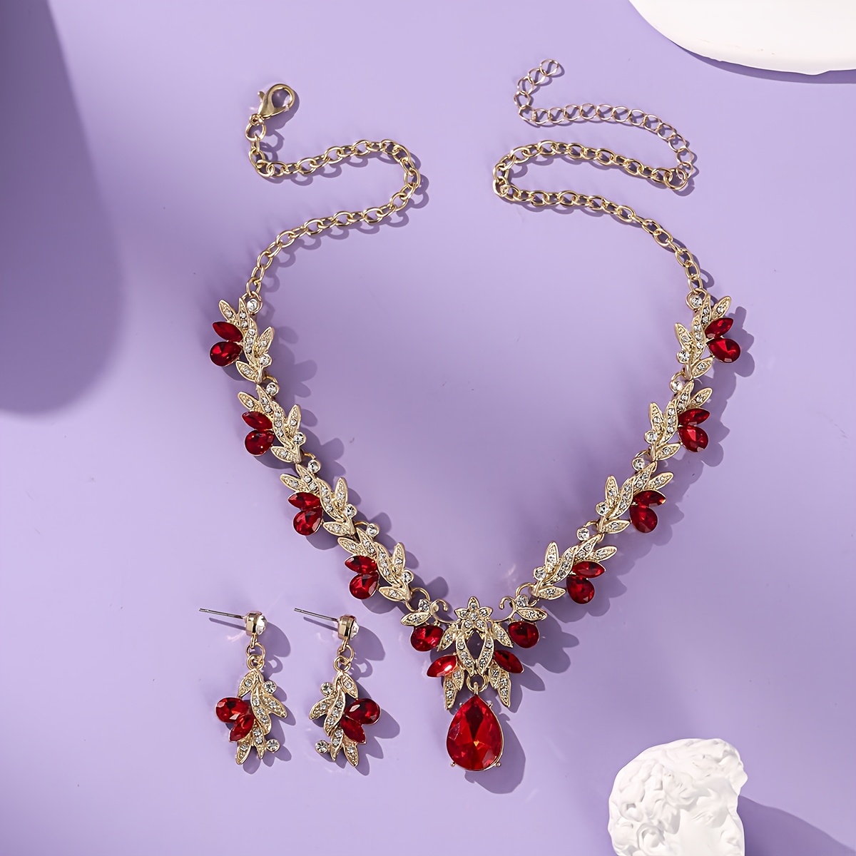 TEMU 3개 럭셔리 라인스톤 주얼리 세트 - 골드 톤 라인스톤 잎사귀 목걸이 및 눈물방울 귀걸이 - 프로모션, 파티, 크리스마스 및 새해 선물용 우아한 브라이덜 웨딩 추가 장식