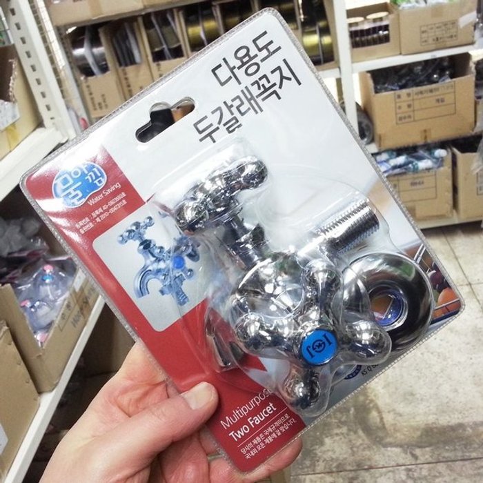 엄지척 물아낌 다용도 두갈래꼭지 베란다 옥외수전 수도꼭지