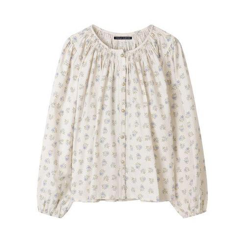 [미니멈 에브리데이]플라워 셔링 라운드 블라우스 (EB3BA020D)