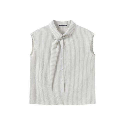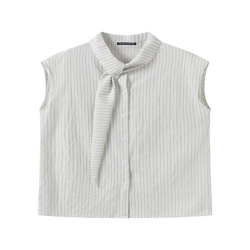 [미니멈 에브리데이]스트라이프 타이 포인트 민소매 블라우스 (EC2BA019D)