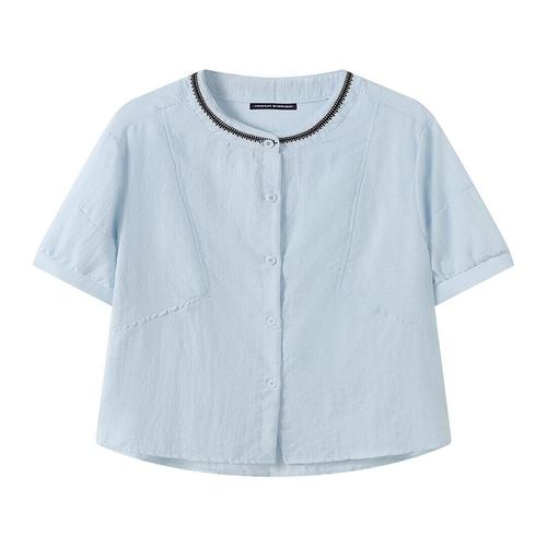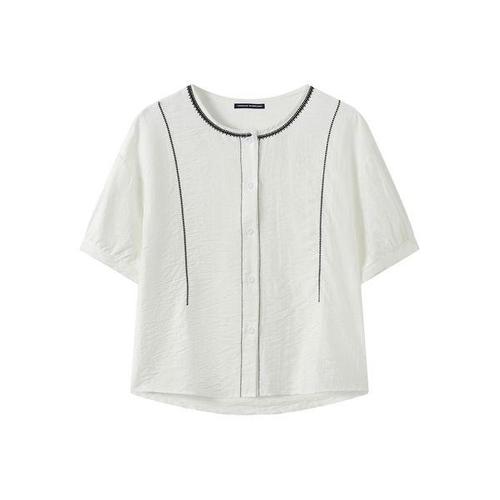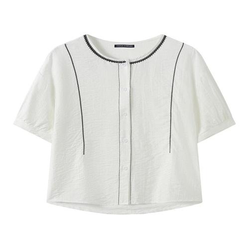 [미니멈 에브리데이]라운드 스티치 자수 포인트 반팔 블라우스 (EC2BA017D)