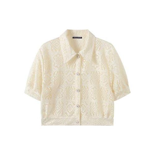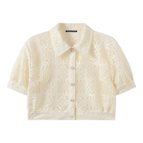 [미니멈에브리데이][미니멈 에브리데이]크로쉐 레이스 디테일 카라넥 크롭 블라우스 (EC2BA013D)