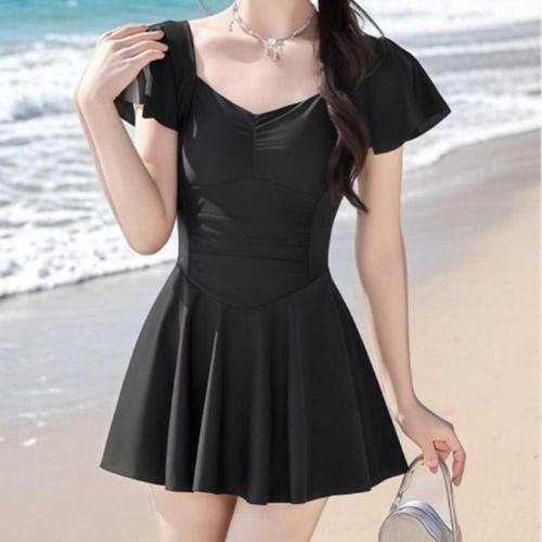 여성 여름 반팔 퍼프 리본 바캉스 미니 원피스 수영복
