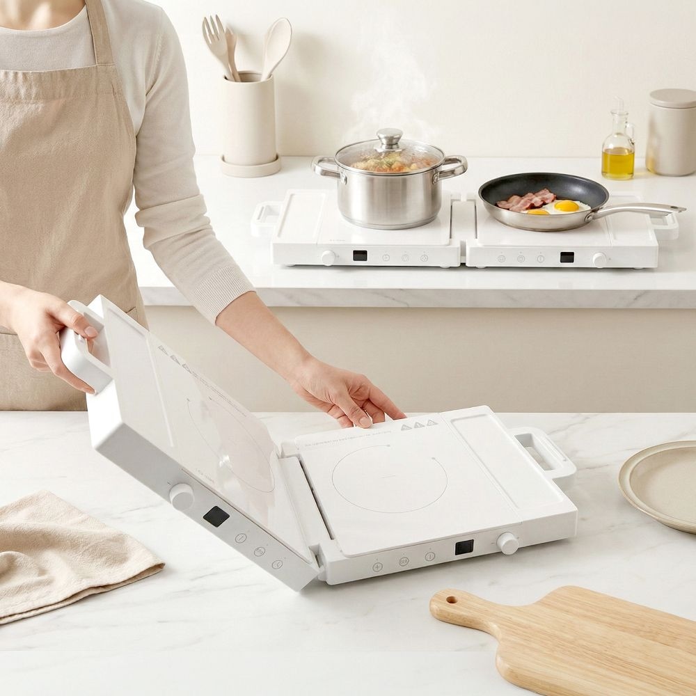 플립 인덕션 2구 접이식 공간절약 미니 가정용 무설치 휴대용 전기렌지