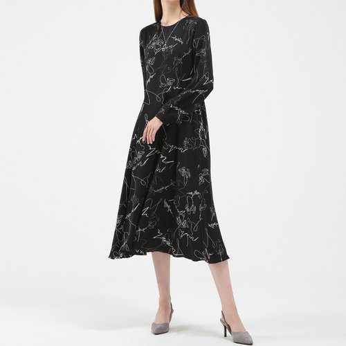 [퀸이즈] 드로잉 패턴 나염 원피스