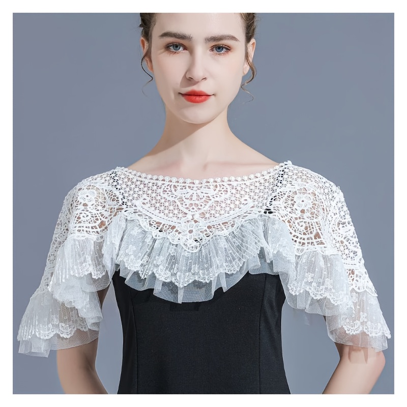 TEMU 레이스 숄 케이프 재킷 창산 겉옷 화이트 블랙 스카프 레이어링 스트랩리스 커버업 조끼