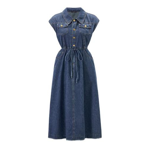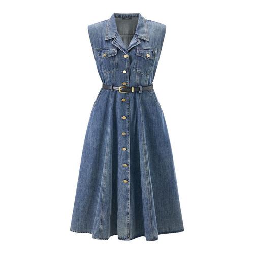 [리빌모아]여자 가을 빈티지 데님 카라 민소매 원피스 SDW-OPA-SLLT169