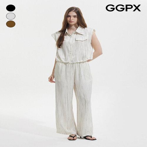 [GGPX]바캉스룩 스트라이프 민소매 셔츠 앤 팬츠 셋업 (GQ4ST005F)