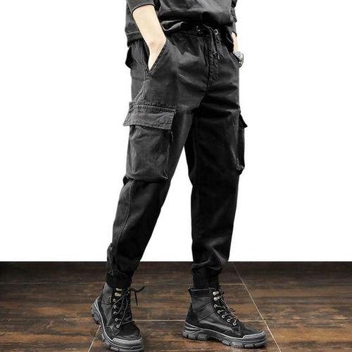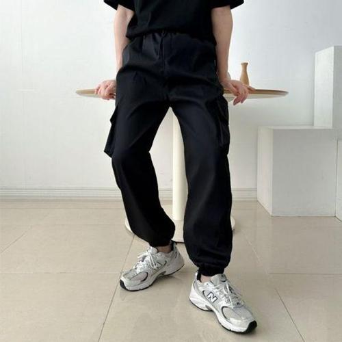 남자 다용도 밀리터리 카고 밴딩 조거팬츠 NE-PTA-Q001-검백