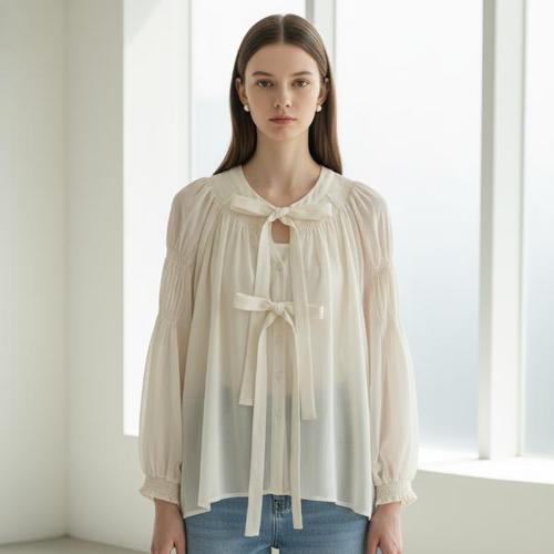 [리블리크]베일 더블리본 시폰 블라우스_RF1BL056