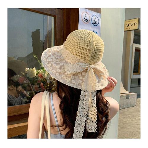 여성 레이스 잔꽃무늬 밀짚 버킷햇 WFJJ645
