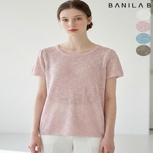 [바닐라비]여성 유넥 퍼프 반소매 데일리 니트