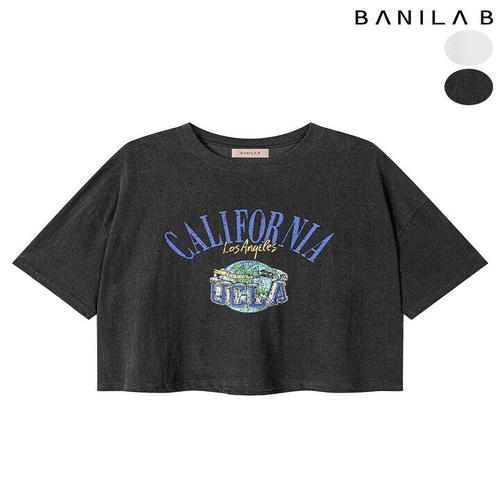 [바닐라비]여성 캘리 프린팅 세미크롭 반팔 티셔츠