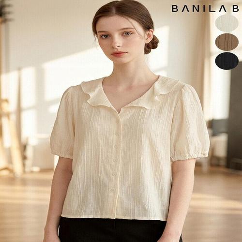 [바닐라비]여성 퍼프 반소매 카라 블라우스