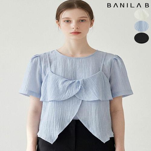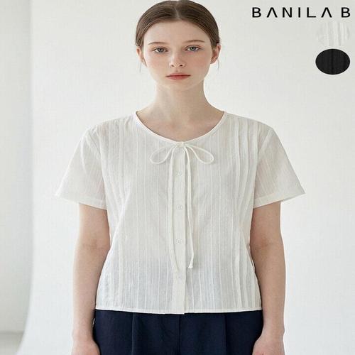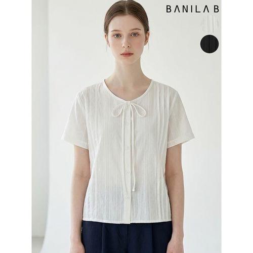 [바닐라비]여성 리본 핀턱 반팔 블라우스