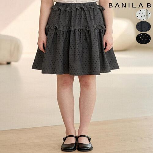 [바닐라비]여성 밴딩 도트 레이스 미디 스커트