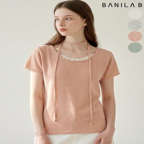 [바닐라비]여성 쁘띠 레이스 반팔 니트(끈set)