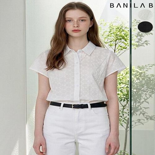 [바닐라비]여성 잔꽃 펀칭 반팔 블라우스