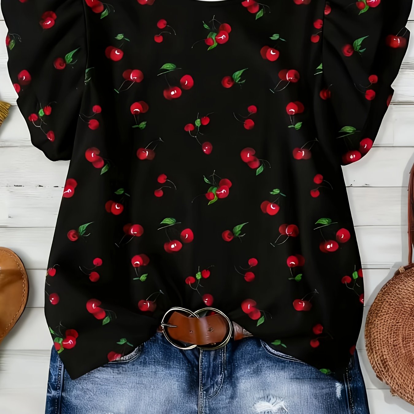 TEMU 여성용 프린트 배트윙 슬리브 블라우스 - 가벼운 반투명 루즈핏 캐주얼 셔츠, 라운드 넥 봄/여름 탑, 세탁기 사용 가능 우아한 스타일, 여름 패션, 품질 좋은 원단