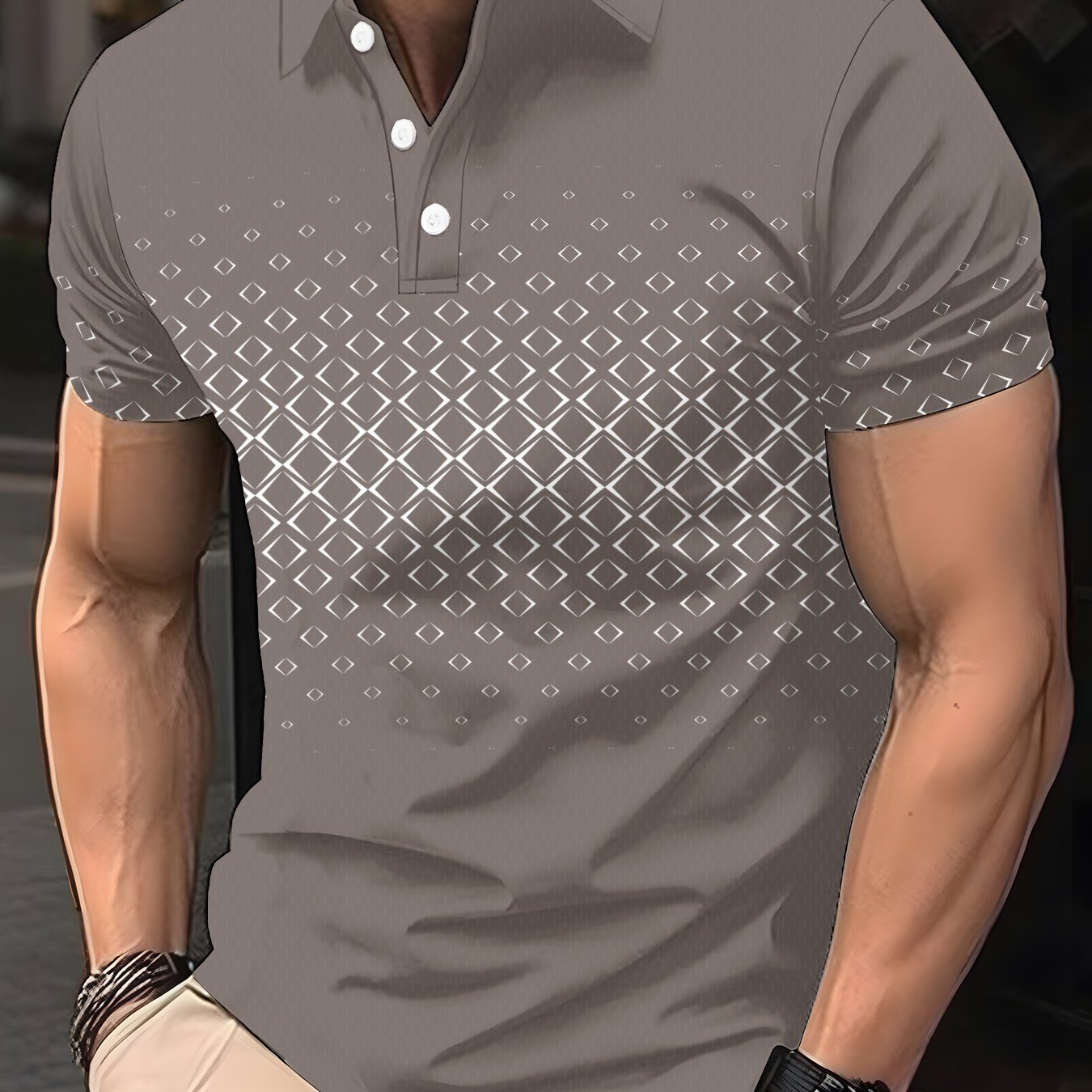 TEMU 남성용 셔츠, 캐주얼 골프 스포츠, 3D 도트 프린트, 반소매, 니트 원단, 약간의 신축성, 레귤러 핏, 사계절용, 칼라 포함