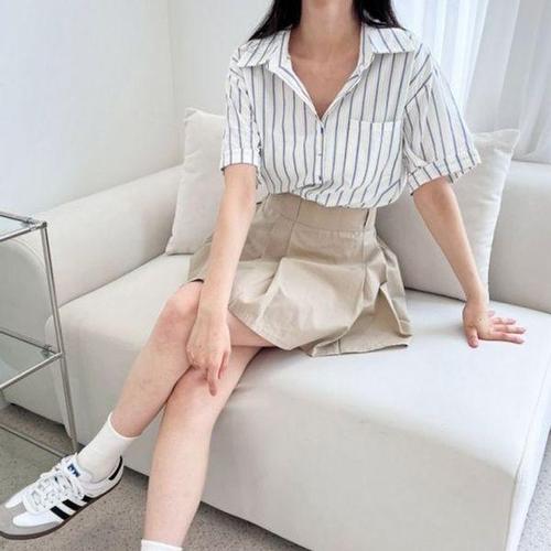 [브이와이][VY] 여자 크롭셔츠 코튼 하늘색 바이올렛 반소매 뒷버튼 셔츠_17191816_588847