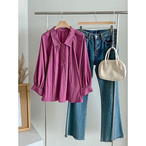 [샵앤]여성 카라넥 절개포켓 바스락 루즈핏 블라우스 셔츠 DGB-WBL-4334-바이올렛