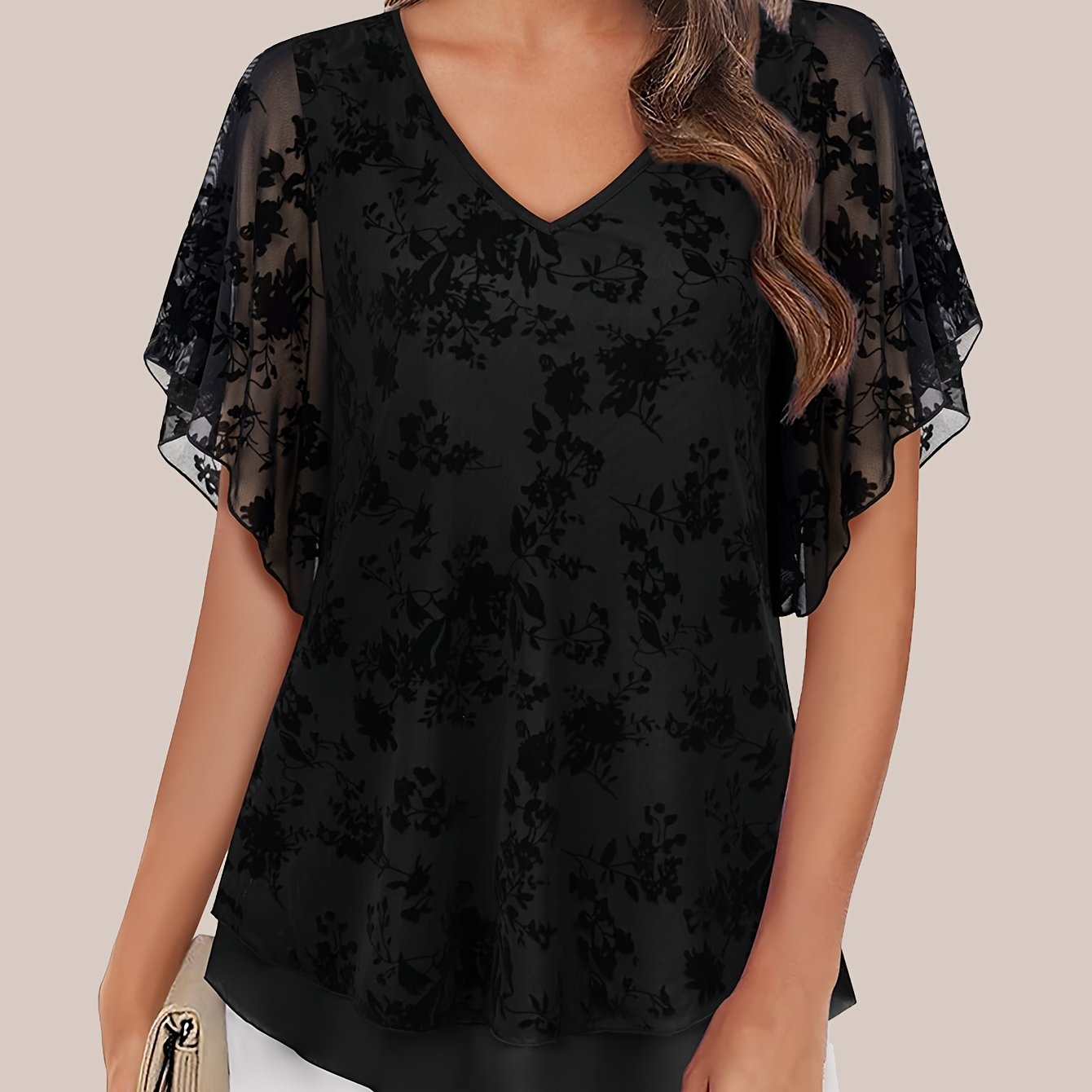 TEMU 여성용 드레시 캐주얼 이중 레이어 메쉬 우아한 여름 블라우스 반팔 브이넥 튜닉 탑