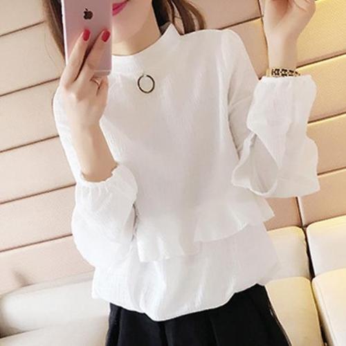 [옷자락]여성 봄여름 시스루 프릴 블라우스
