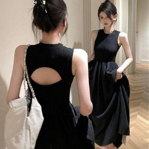 블랙 뒷포인트 롱 나시 원피스 반전 디테일 여름 원피스 WFLLO84