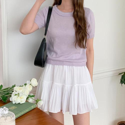 [다잇템]여자 세미크롭 아방 프릴 U넥 반소매 물결 니트