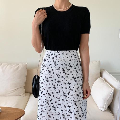[바닐라비]여성 유넥 퍼프 반소매 데일리 니트