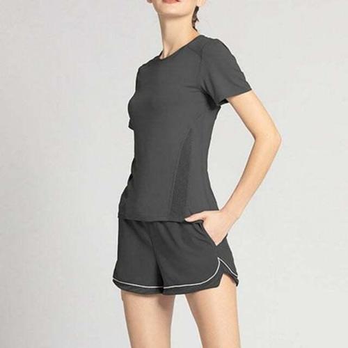 2피스 스포츠 세트 여성용 짐 요가 세트 심리스 피트니스 짐 의류 스포츠웨어 반팔 상의 스포츠 반바지 레깅스 슈트