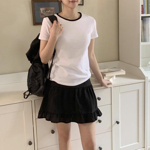 [옷자락] 여자 데일리 슬림핏 배색 라운드넥 반팔티셔츠