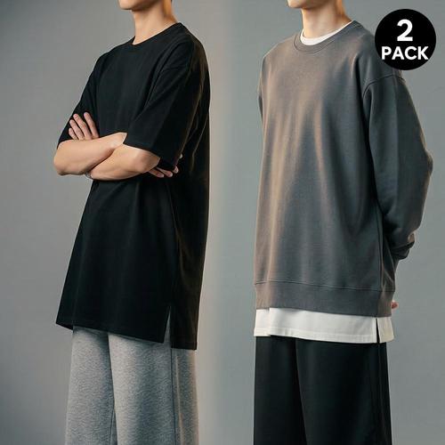 [화이트빌딩]16수 남자 반팔티 면 무지 레이어드티 2PACK